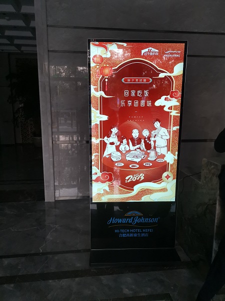 [廣告發(fā)布]合肥某品牌酒店采購我司兩臺(tái)65寸立式廣告機(jī)用于播放宣傳視頻