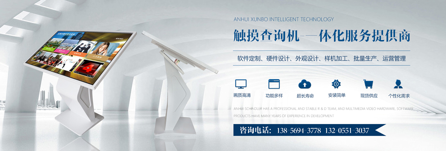迅博智能 主要從事觸摸屏、觸摸顯示器、OLED柔性觸摸屏、觸摸查詢一體機(jī)系列產(chǎn)品及觸摸顯示互動(dòng)體驗(yàn)軟硬件產(chǎn)品;智能排隊(duì)叫號(hào)、網(wǎng)上預(yù)約排隊(duì)叫號(hào)、安康碼皖事通取號(hào)系統(tǒng);曲面屏、OLED 屏幕、柔性屏、LCD液晶大屏拼接系統(tǒng);落地式、壁掛式單機(jī)版網(wǎng)絡(luò)版室內(nèi)外廣告機(jī)及數(shù)字標(biāo)牌廣告信息發(fā)布系統(tǒng);室內(nèi)外LED電子格柵透明屏、單雙色、全彩電子大屏;各類辦事營(yíng)業(yè)廳:公積金...